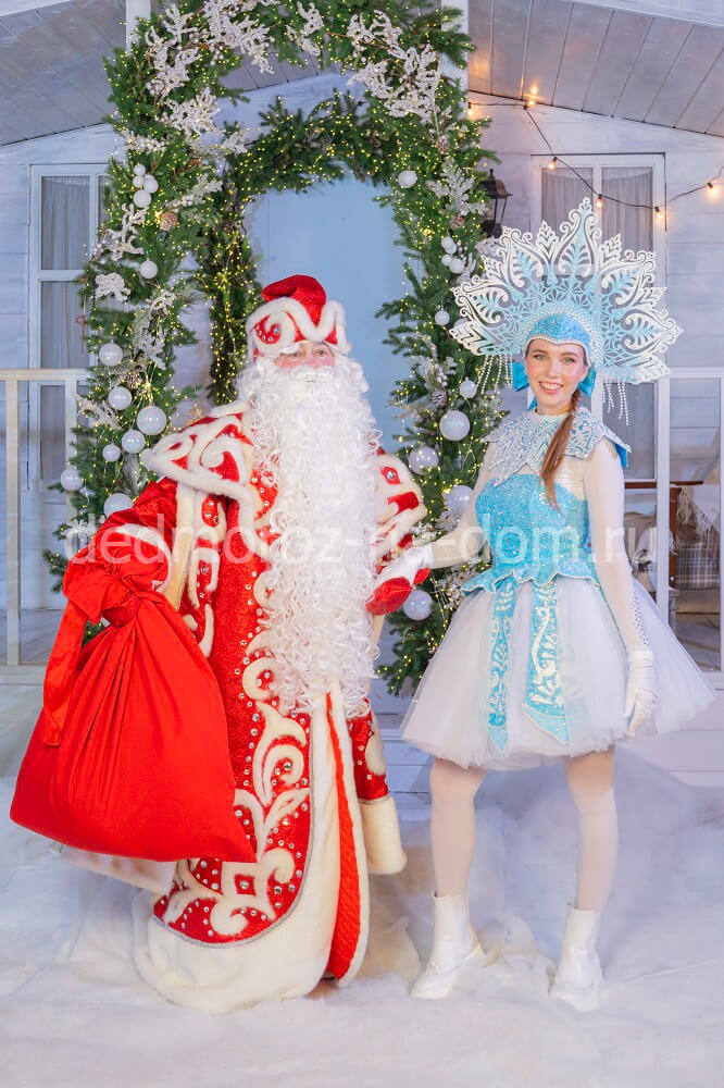 Снегурочка в этом костюме составляет пару Деду Морозу в костюме «Хохлома». Костюм Снегурочки также выполнен по индивидуальному заказу из эксклюзивной ткани. Ткань, как и у Деда Мороза, выполнена внутренней печатью и отлично смотрится. Эти костюмы есть только у нас, спешите сделать заказ с необычными Дедом Морозом и Снегурочкой! |