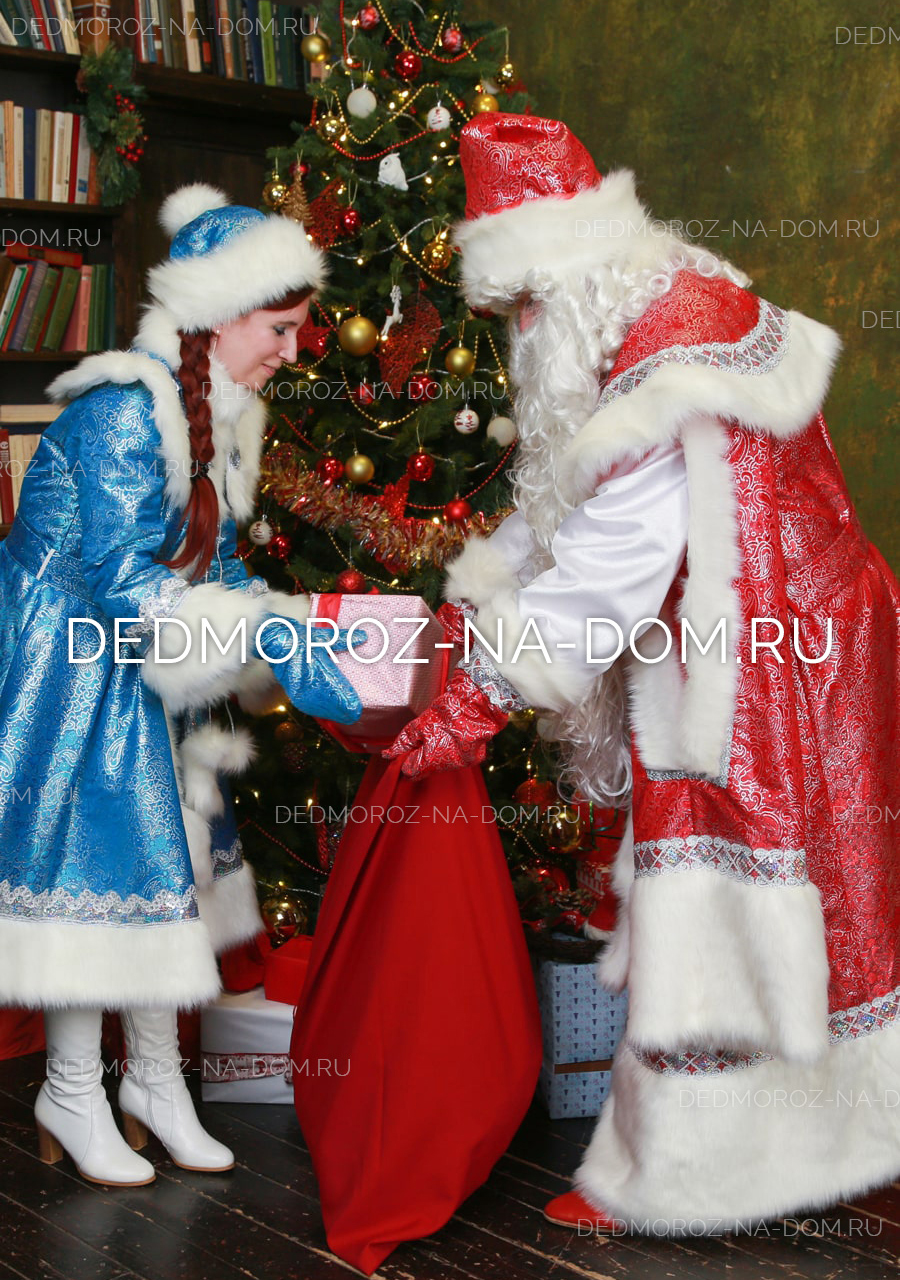 Снегурочка в этом костюме составляет пару Деду Морозу в костюме «Хохлома». Костюм Снегурочки также выполнен по индивидуальному заказу из эксклюзивной ткани. Ткань, как и у Деда Мороза, выполнена внутренней печатью и отлично смотрится. Эти костюмы есть только у нас, спешите сделать заказ с необычными Дедом Морозом и Снегурочкой! |